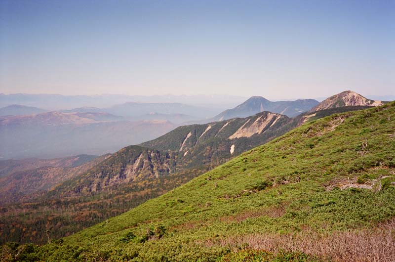 趣のある樹林帯の中をゆっくりと歩き、赤岳鉱泉を経由し、赤岩の頭に立つと、眼前に硫黄岳、横岳、赤岳、阿弥陀岳の大パノラマが展開します。景色に感動しつつ更に20分ほど歩いて硫黄岳頂上にたどり着くと、ここからは八ヶ岳の広大な裾野を見ることが出来ます。