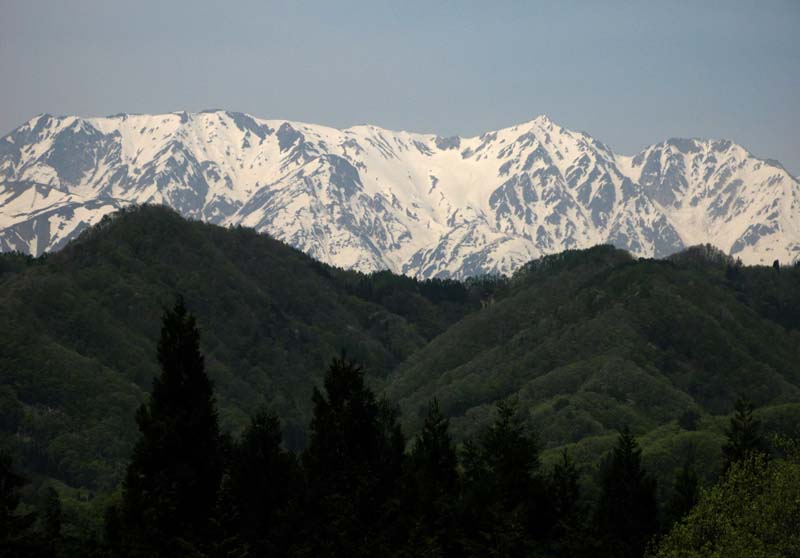 長野駅から白馬村へ向かう県道から見える「日本一美しい村」という案内板がドライバーの関心をひいています。ここからこの景色が見えるとは!!思ってもみなかった景色が広がっていました。